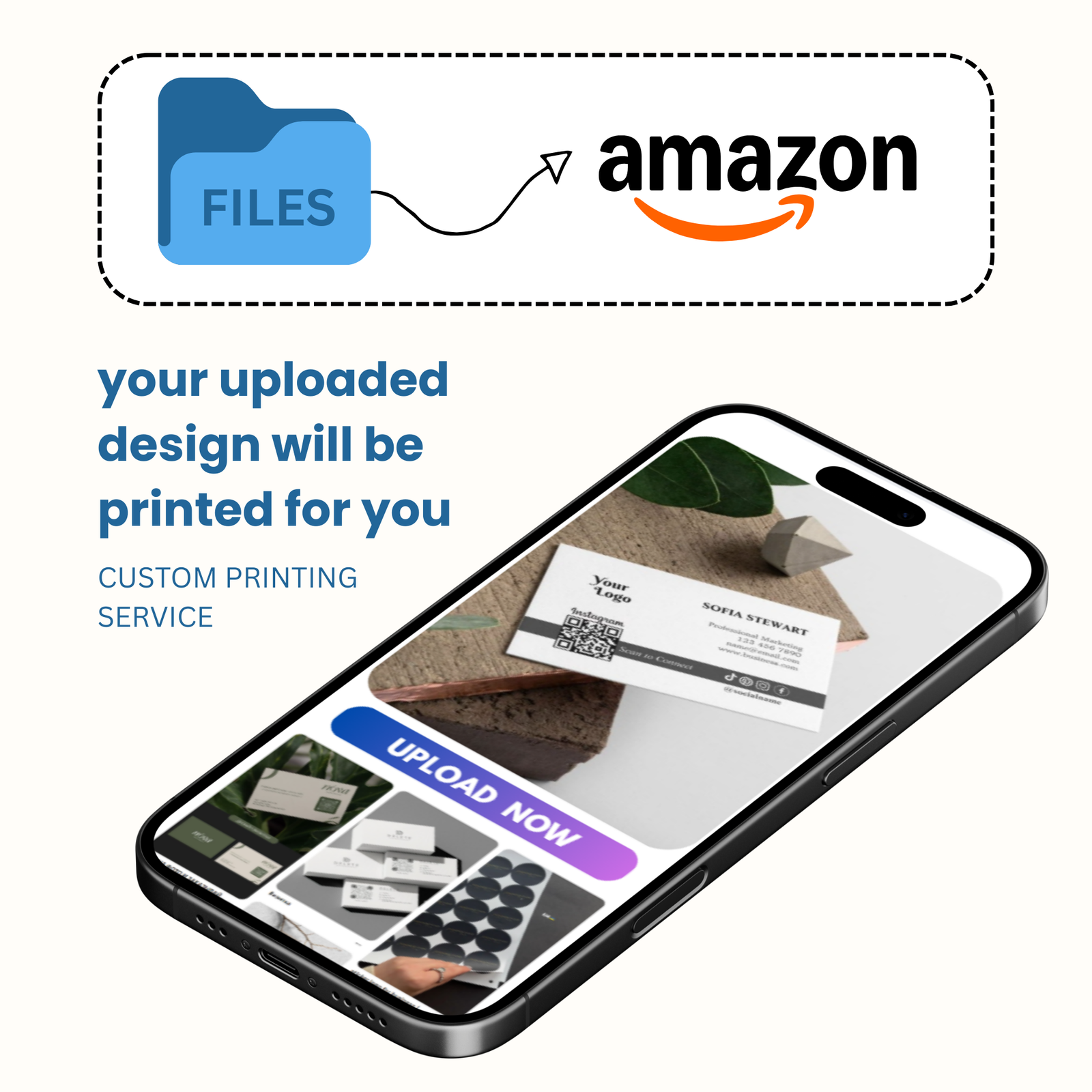 This custom card printing service is designed for businesses and individuals who want their own designs printed and delivered directly through Amazon. Cards are printed in a standard 3.5 x 2.2 inch size, making them suitable for multiple purposes. You can use this listing to print business cards, visiting cards, thank you cards, Instagram cards, review cards, WhatsApp QR cards, and more. Simply upload your design, select single-side or double-side printing, and we handle the printing and finishing. All cards are printed on 350 GSM cardstock using professional printers, ensuring neat cutting, clear details, and fade-resistant results—ideal for online sellers, startups, and small businesses. Suitable For: Business Cards Visiting Cards Thank You Cards Instagram Cards Review Cards WhatsApp QR Cards Online & Home-Based Businesses